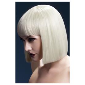 Parrucca a caschetto sotto l’orecchio con frangia para modello valentina color biondo platino. No...