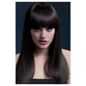 Parrucca lunga liscia fin sotto le spalle color castano scuro con frangia para. Non piastrabile ne fona...