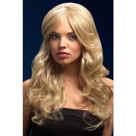 Parrucca modello GISELE bionda platino lunga fin sotto le spalle con boccolo finale, riga centrale e se...