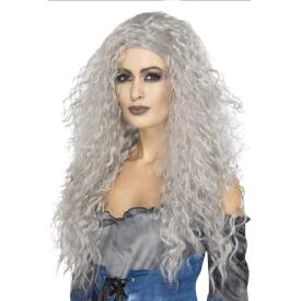 Parrucca modello CAPITAN UNCINO nera riccia con lunge bande laterali di ricci neri lunghe fin sotto le ...