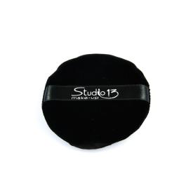 Piumino in cotone, morbido e di colore nero, con un nastro di raso per facilitare la presa e l'utilizzo durante la stesura di ciprie e altri prodotti per fissare il trucco. Diametro 10cm.