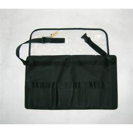 Cintura porta pennelli in stoffa nera con 17 postazioni e chiusura in velcro. 48cmx31cm.
