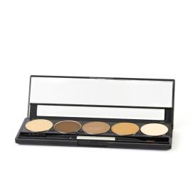 Palette con 4 tonalià di colore per sopracciglia in polvere, più cera fissativa e pennello applicatore.