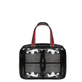 Borsa trucco trasparente con manici, apribile tramite zip in due lati.