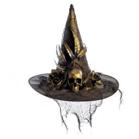 Cappello a cilindro in versione mini glitterato oro montato su cerchietto con veletta nera annessa...