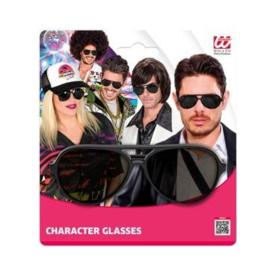 Occhiali supermiope con lenti a fondo di bottiglia trasparenti con montatura nera in plastica.