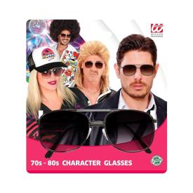 Occhiali da aviatore con lente trasparente e montatura nera. Sono applicabili tramite il pratico elasti...