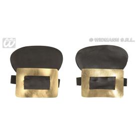 Confezione contenente un paio di finte fibie rinascimentali in ecopelle nera con fibbie in ecopelle dorata o argentata. Sono applicabili tramite il pratico elastico in dotazione.