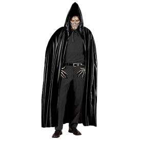 Mantello in raso con cappuccio e laccetti per la chiusura. Colore nero. Lunghezza complessiva 175cm cir...