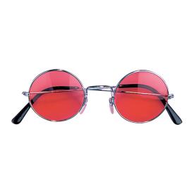 Occhiali tondi con lente rossa e montatura argento e nera. Misura unica