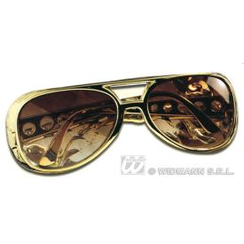 Occhiali da Elvis con lenti marroni scuro semitrasparenti e montatura di color oro smaltata.