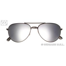 Occhiali da poliziotto con montatura in metallo color grafite con lenti a specchio grige scuro. Misura unica.