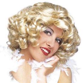Parrucca modello GISELE bionda platino lunga fin sotto le spalle con boccolo finale, riga centrale e se...