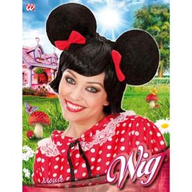Parrucca modello TOPOLINA a caschetto nera con frangia laterale liscia e orecchie nere da topolina incorporate. Non piastrabile ne fonabile. Meadia qualità. Misura unica.