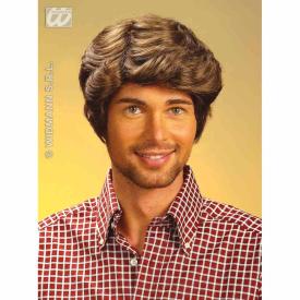 Parrucca modello Casanova da uomo con taglio anni ‘70 / ‘80 color moro con baffi del medesi...