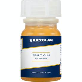 TV Spirit Gum is a make-up artist’s adhesive, especially for adhering hair, beards, and wigs. The special mixture of natural resins of TV Spirit Gum means that, after it dries, it appears more matt and more natural on the skin than does normal Spirit Gum.
