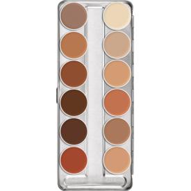 Rubber Mask Grease è un prodotto a base grassa d'eccezionale opacità ed aderenza. Il prodotto è l'ideale per colorare protesi in lattice come nasi artificiali, menti, ferite o calotte. I colori di questa palette possono essere sostituiti singolarmente con le cialde di ricambio. Per applicare uniformemente il prodotto inumidire la spugna con un po' di alcol (es. con Spirit Gum Remover and Thinner). In questo modo Rubber Mask Grease consente un'applicazione uniforme, facile e persino sottile. Come gli altri Make-up a base grassa, Rubber Mask Grease andrebbe fissato con la cipria Traslucent Powder.