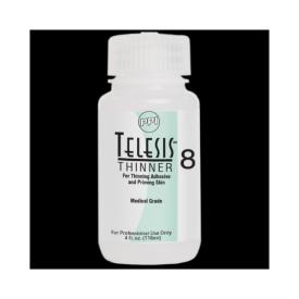 TELESIS 8 Thinner can be used to thin out Telesis 8 Silicone Adhesive when necessary, as well as prime the skin surface before application. To accelerate the drying time of Telesis 8, prime the skin with the Thinner and then apply Telesis 8 to the appliance. Once the two surfaces connect, the drying time will take only a few moments. The hold is incredibly strong but very easy to remove with Telesis Silicone Adhesive Remover. This product is not compatible with Telesis 5 or Telesis 7 silicone adhesives.