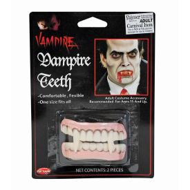 Paio di canini da vampiro applicabili grazie alla loro pratica forma a capsula con adesivo dentale inco...